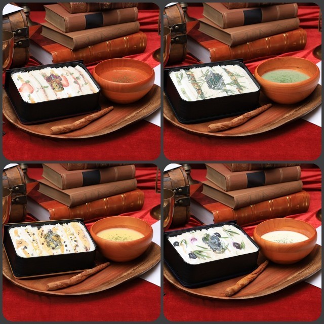 左下・魔法のトランクケーキ 右下・ホグワーツ特急カフェラテ